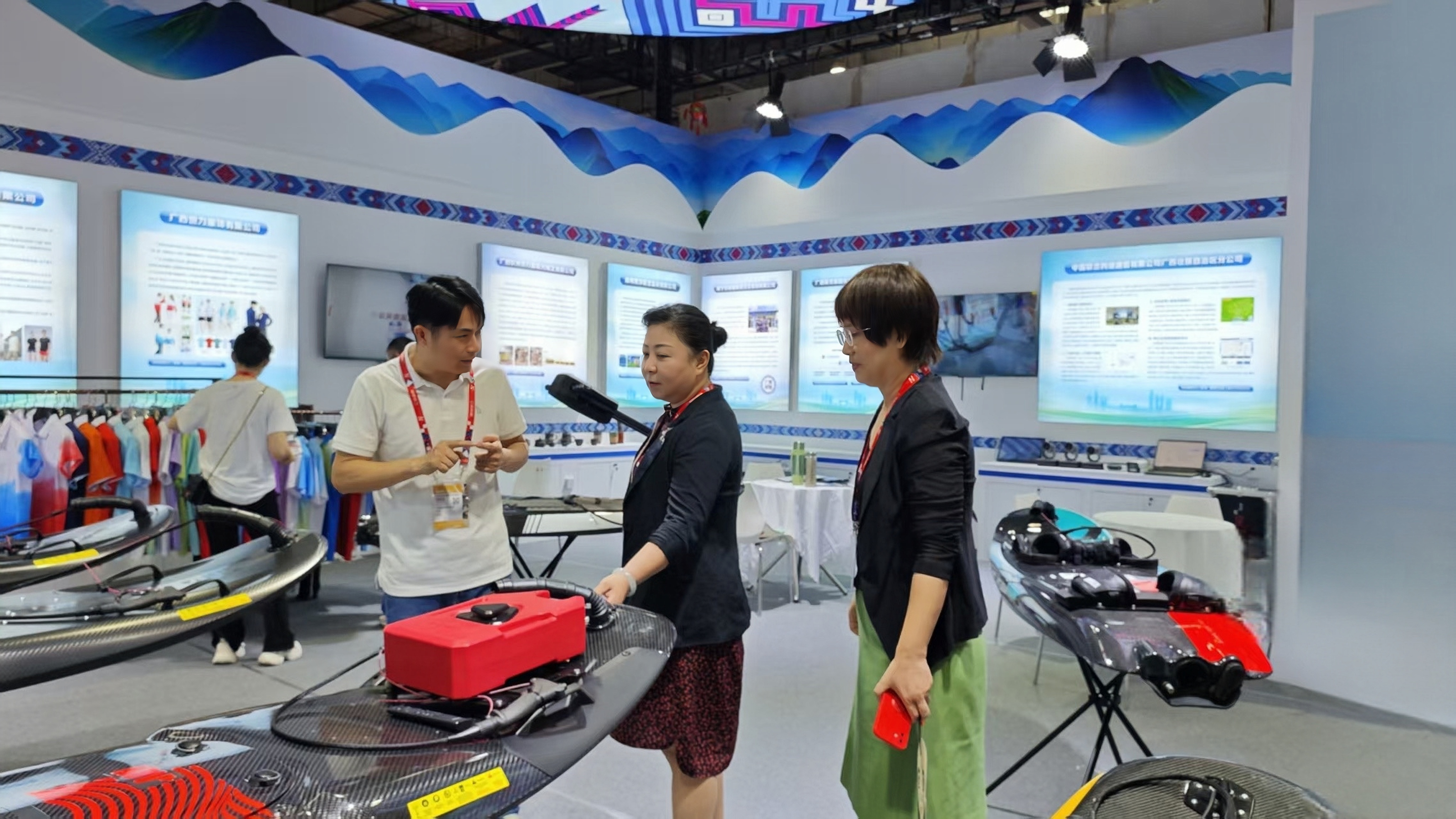 国家体育总局体育经济司司长杨雪鸫(右二)莅临广西展位指导工作