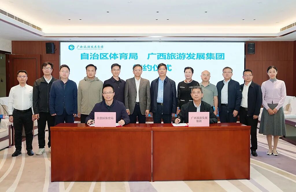 10月23日,自治区体育局与广西旅游发展集团在南宁开展座谈交流并签署战略合作协议。自治区体育局党组书记、局长黄剑峰,广旅集团党委书记、董事长容贤标出席座谈并见证签约。自治区体育局党组成员、副局长林凌云与广旅集团职工董事、工会主席陆严格代表双方签约。
