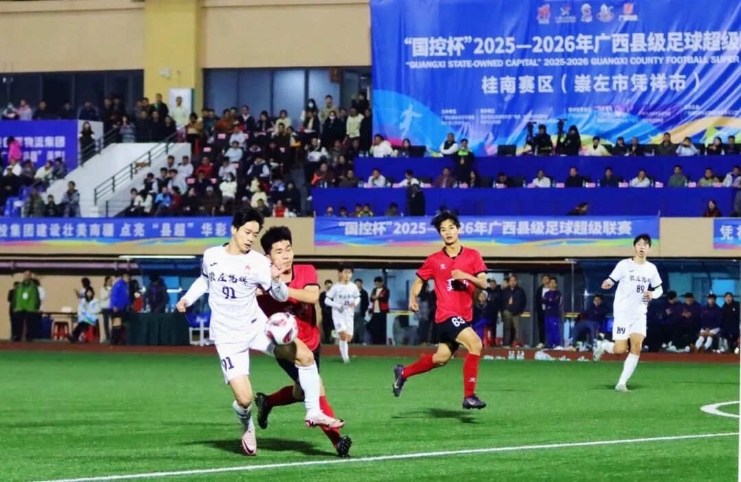 1月31日-2月1日,“国控杯”2025-2026年广西县级足球超级联赛(简称广西“县超”)第三轮上半程火热开赛!桂东、桂南两大赛区5场对决同步上演,18粒进球燃炸全场,累计超4万人现场观赛,多地解锁全民观赛新方式,足球激情与县域活力双向奔赴,文旅体商深度融合赋能县域发展。