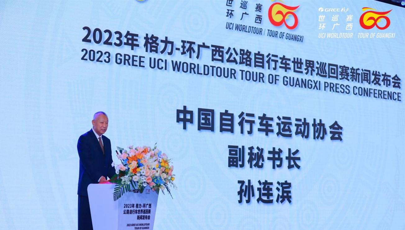 中国自行车运动协会副秘书长孙连滨致辞中指出,环广西的成功举办,大力推动了自行车运动在中国的发展,环广西也已经从一个初创赛事成长为世界自行车界的知名赛事,成为中国自行车与世界交流的舞台。他强调,当前正值2024巴黎奥运会备战的关键时期,国家自行车队各支队伍正在厉兵秣马,全力以赴为巴黎奥运会积蓄力量,中国国家队男、女队将参加本届环广西,希望他们借助国际大赛,提升竞争力和团队作战力,圆满完成巴黎奥运会前的这次重要练兵。他表示,中国自行车运动协会将继续坚定不移地致力于推动中国自行车运动的发展,不断加大对年轻选手的培养和扶持力度,为他们提供更多的机会和平台,积极参与国际自行车运动事务,促进中国自行车运动与世界自行车运动的交流与合作。