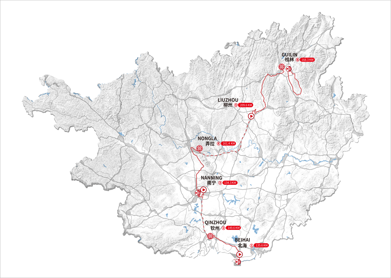 环广西是经国际自行车联盟授权,由中国自行车运动协会、广西壮族自治区人民政府共同主办的世界顶级、中国唯一的公路自行车世界巡回赛,与举办超过100年的“环法自行车赛”、“环意大利自行车赛”等老牌名赛属同一级别,2017年至2019年,在广西连续成功举办过三届,受新冠疫情影响停办,今年再次重磅回归,将于10月12日—17日在广西的北海、钦州、南宁、柳州、桂林等5个城市逐个上演,从南到北纵贯广西,穿越平原、丘陵和山地不同地貌,线路总长度为958.8公里,既有北部湾滨海风光、甲天下的漓江山水,又有自治区首府南宁、历史名城柳州的城市景观,全面展示广西秀美的自然山水、历史文化和民族风情,为各国选手创造完全不同于其它赛事的完美体验,向全球观众呈现一个独具魅力的广西。10月17日,世界女子公路自行车世界巡回赛收官之战也将在桂林进行最后的冲刺。