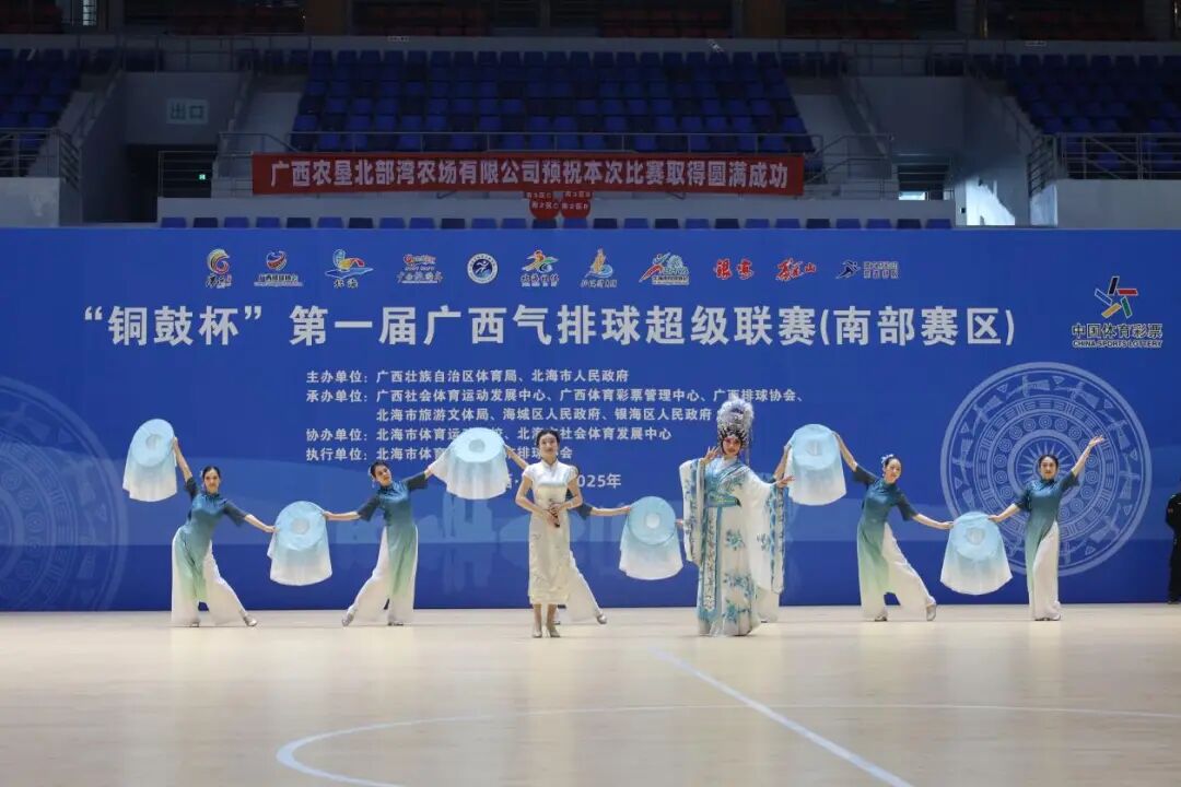 11月29日,“铜鼓杯”第一届广西气排球超级联赛(南部赛区)在北海市体育馆正式拉开战幕。南宁市、北海市、防城港市、钦州市、贵港市、百色市、崇左市等7个设区市通过选拔产生的27支市级冠军队约350多人,汇聚到北海参加南部赛区赛,在国标男子、国标女子、桂标男子、桂标女子四个组别中展开激烈角逐。开幕式上,戏歌《彩云追月》与广西特色民族舞蹈《铜鼓舞》的精彩表演,为赛事营造了浓厚的民族文化氛围。