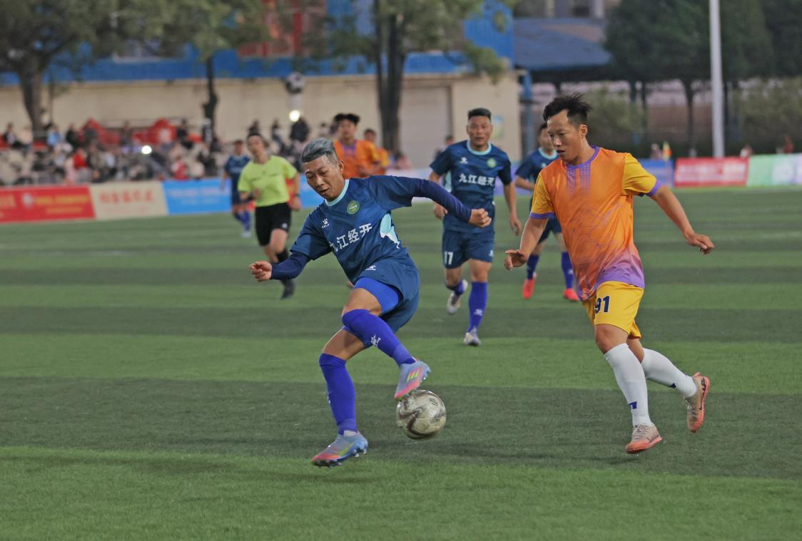 随后,两场球赛先后激情开赛,分别由广西苍梧县六堡茶足球队对阵江西九江经开区足球队、浦北陈皮足球队迎战远道而来的贵州榕江县足球队。球员们秉承“友谊第一,比赛第二”的体育精神,奋力拼搏、默契配合,精彩对决与观众呐喊助威声交织,中场地方特色文艺表演尽显体育与文化融合之美。最终,广西苍梧县六堡茶足球队与江西九江经开区足球队以1:1打平,演绎“茶香遇足球”,而浦北陈皮足球队以0:2憾负村超冠军队贵州榕江县足球队,这既是实力的碰撞,更是两地情谊的升华,为现场观众奉上一场激情与友谊交织的足球盛宴。