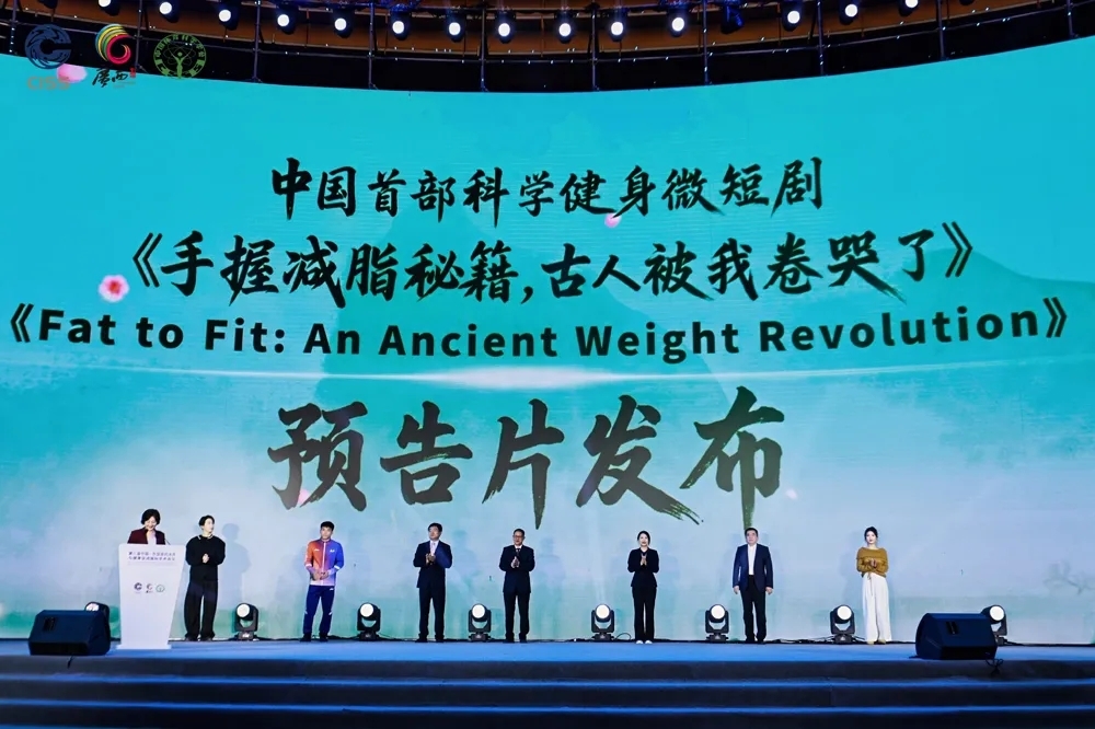 在本次微短剧的发布中,项目指导单位代表、联合出品方代表和男女主演共同亮相,广西壮族自治区体育局领导、全运会冠军自由式摔跤冠军陆锋也共同上台为短剧发布助力。《手握减脂秘籍,古人被我卷哭了》打破传统科学健身指导的刻板形式,创造性采用“微短剧+运动”模式,将现代科学健身知识融入轻松幽默的穿越故事中。该剧通过富有戏剧张力和网感的情节,以群众喜闻乐见的方式,让健康知识在欢声笑语中深入人心。该剧预告的公开展示,得到了与会中外嘉宾的高度关注与积极评价。专家认为,这不仅是科学健身指导形式的突破,更是体育、健康、文化、传媒跨领域协同的一次成功实践,为利用新型传播工具服务大众健康开辟了新路径。