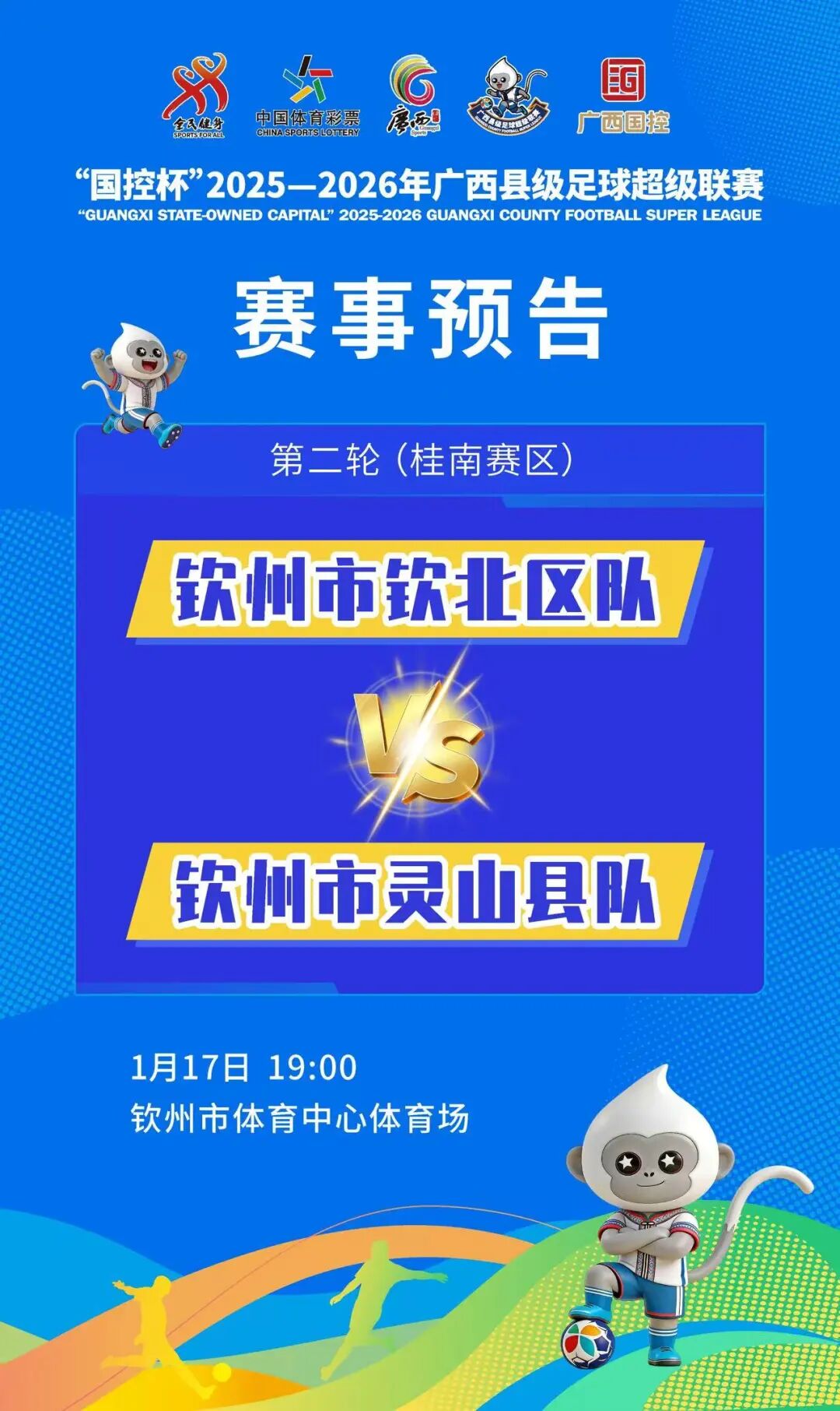 1月17日19时,钦州同城德比重磅来袭!钦州市钦北区队首轮大胜展现强劲实力,球队配合娴熟,进攻火力十足;钦州市灵山县队则带着“中国荔枝之乡”的活力,为家乡球迷献上精彩比赛。