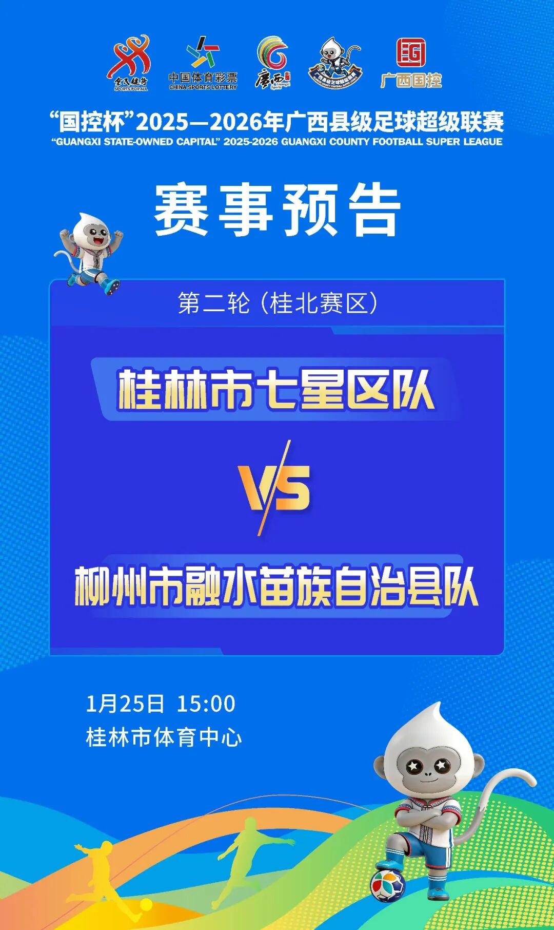 1月25日(周日)15:00,在桂林市体育中心,桂林市七星区队VS柳州市融水苗族自治县队,桂林市七星区队球员兼具学院派的战术素养与街头足球的创造力,打法灵动多变,善于根据对手调整节奏,主场氛围将成为他们的强大助力。柳州市融水苗族自治县队带着苗乡人民的热情与坚韧,将民族文化与足球精神深度融合,球风硬朗且充满灵性,快速转换的打法常能出其不意。