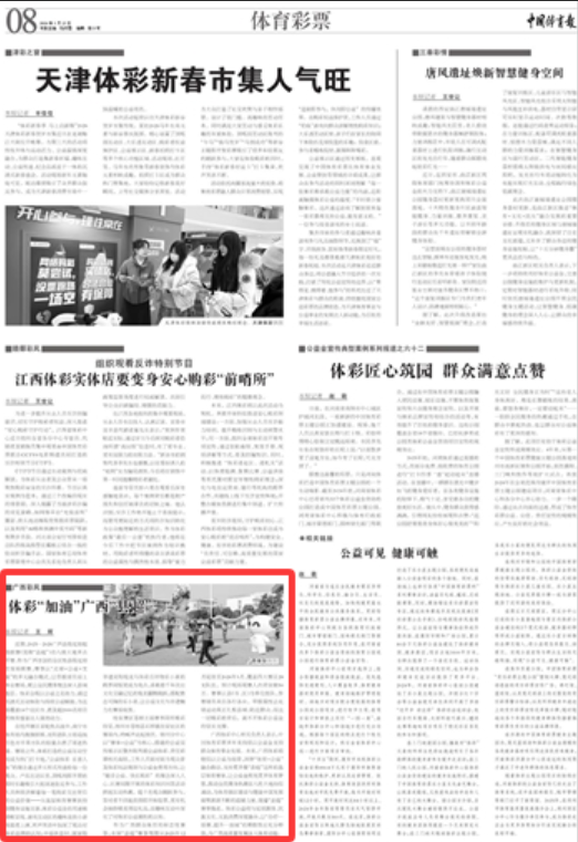 2026年1月23日,《中国体育报》08版刊登了《体彩“加油”广西“县超”》的报道。