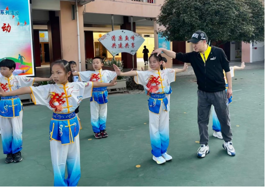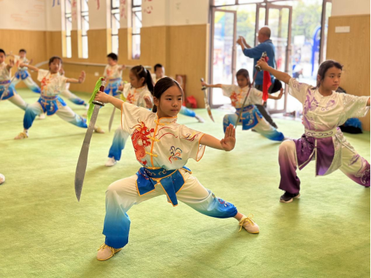 “马步扎稳!出拳!”在箭盘山小学操场上,市体校武术队主教练李杰毅带领学生进行武术套路和刀术训练。在教练的口令下,小同学们练得有板有眼,一招一式如行云流水,让孩子们切实感受到传统体育的魅力。