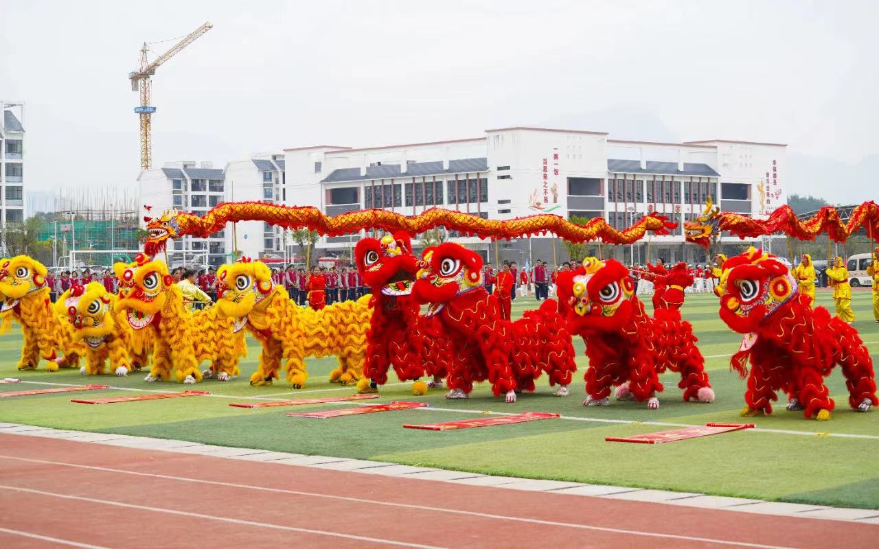在响亮的锣鼓声中,4条祥龙、8头瑞狮登场,节目《龙腾狮跃、雄起苍梧》拉开了此次开幕式文艺演出的序幕。