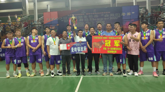 8月28日晚,2024年富川瑶族自治县“全民健身日”“雪花勇闯天涯SuperX杯”篮球赛在该县体育馆圆满落下帷幕。富川瑶族自治县县委常委、宣传部部长汪溪泉,县文体广电和旅游局党组书记、局长林忠,县文体广电和旅游局党组副书记、副局长严斌等到现场观看比赛并为获奖队伍颁奖。