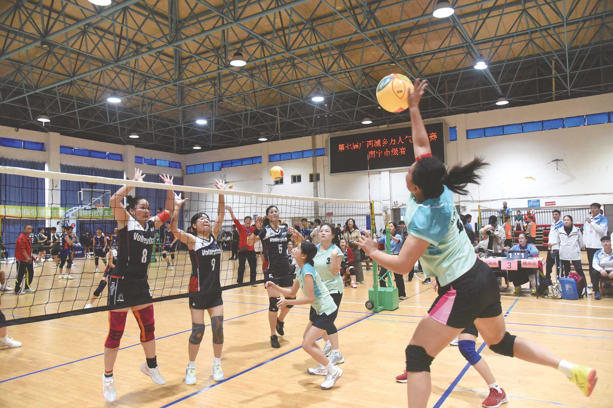 11月1日,第七届广西城乡万人气排球赛南宁市级赛在南宁市体育场馆服务中心综合训练一馆开赛,来自12个县(市、区)的400余名运动员将在两天的赛程中分组对抗,争夺自治区总决赛参赛资格。