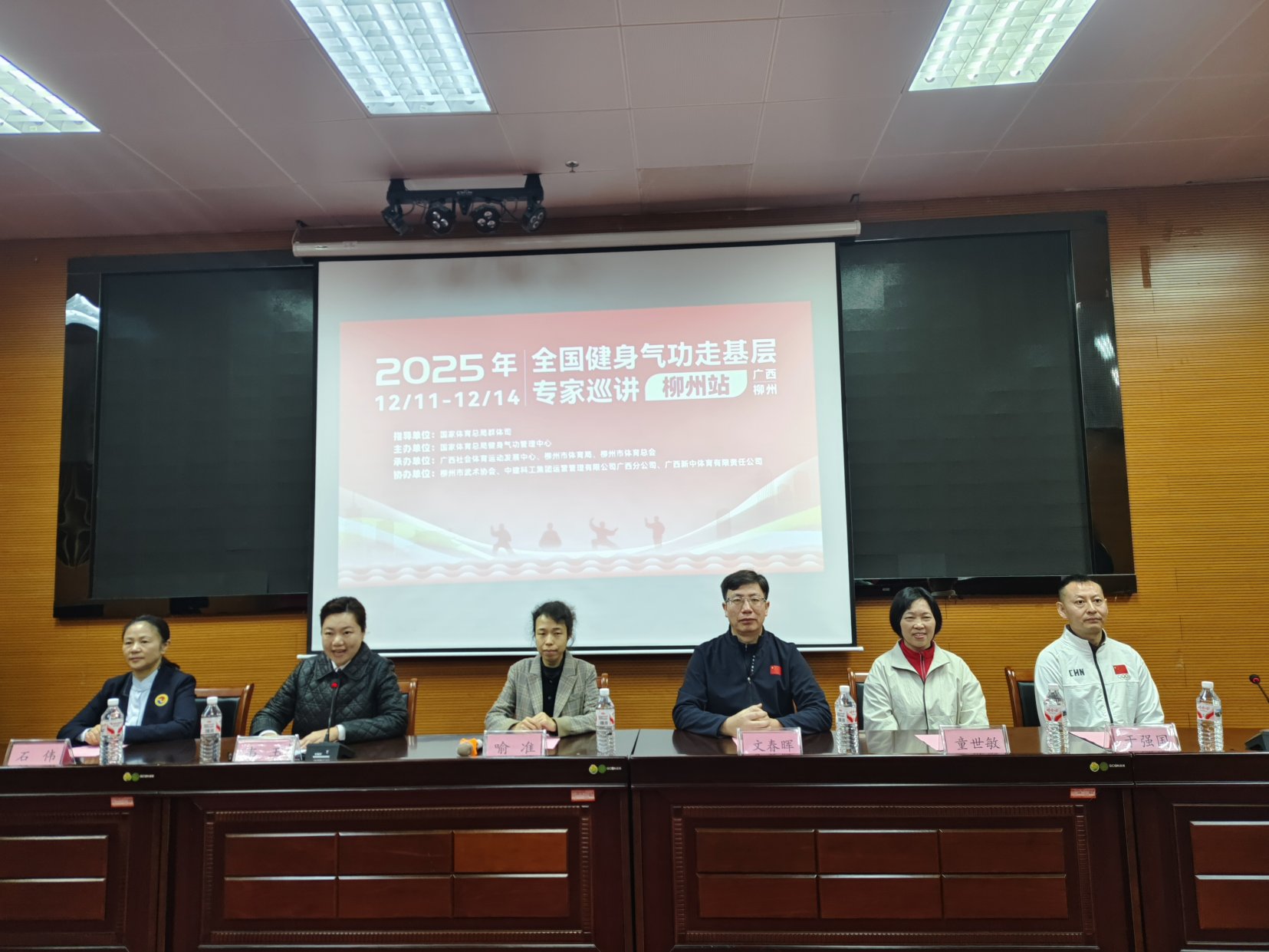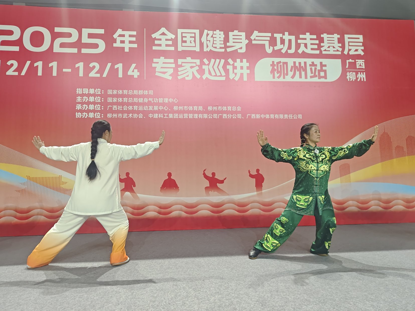 12月11日,全国健身气功走基层专家巡讲(柳州站)在柳州体育中心正式启动。本次活动由国家体育总局群体司指导,国家体育总局健身气功管理中心主办,广西壮族自治区社会体育运动发展中心、柳州市体育局、三江侗族自治县人民政府、柳州市体育总会承办,三江侗族自治县文化体育广电和旅游局、柳州市武术协会、三江侗族自治县老年人体育协会、中建科工集团运营管理有限公司广西分公司、广西新中体育有限责任公司共同协办。国家体育总局健身气功管理中心选派的童世敏、于强国、石伟等国内知名健身气功专家亲临柳州授课。