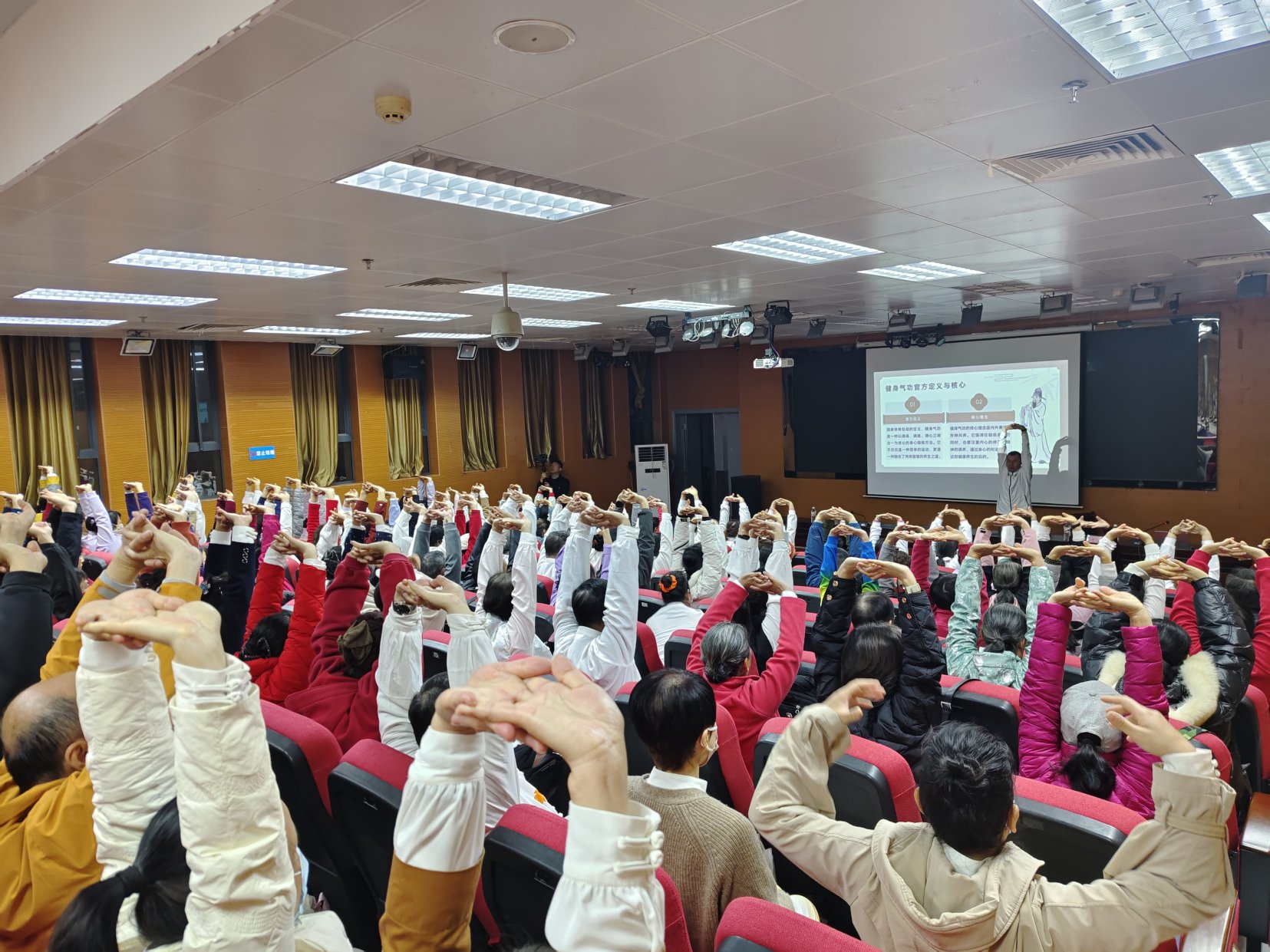 活动首先进行科普讲座《气功健身原理与练功窍要》,由健身气功国家级社会体育指导员、国家级裁判员,健身气功科学健身指导人才库成员于强国老师进行授课。于老师以深入浅出的讲解、系统专业的梳理,为听众揭开了气功健身的科学内涵与实践要领,让学员们对这一传统养生方式有了理性认知与实操方向。