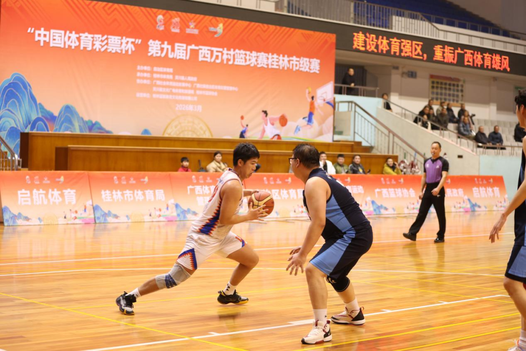 3月22日,“中国体育彩票杯”第九届广西万村篮球赛桂林市级赛在灵川县体育馆隆重开幕。