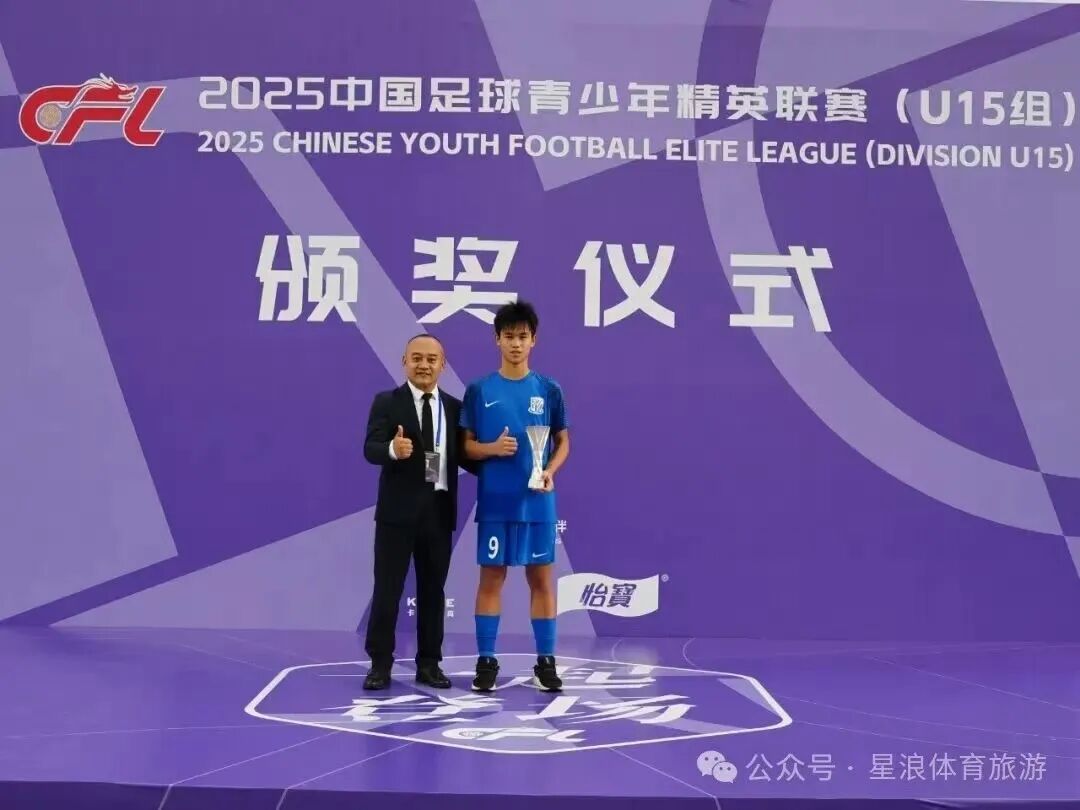 右一为韦家业获2025年中国足球青少年精英联赛U15组最佳射手