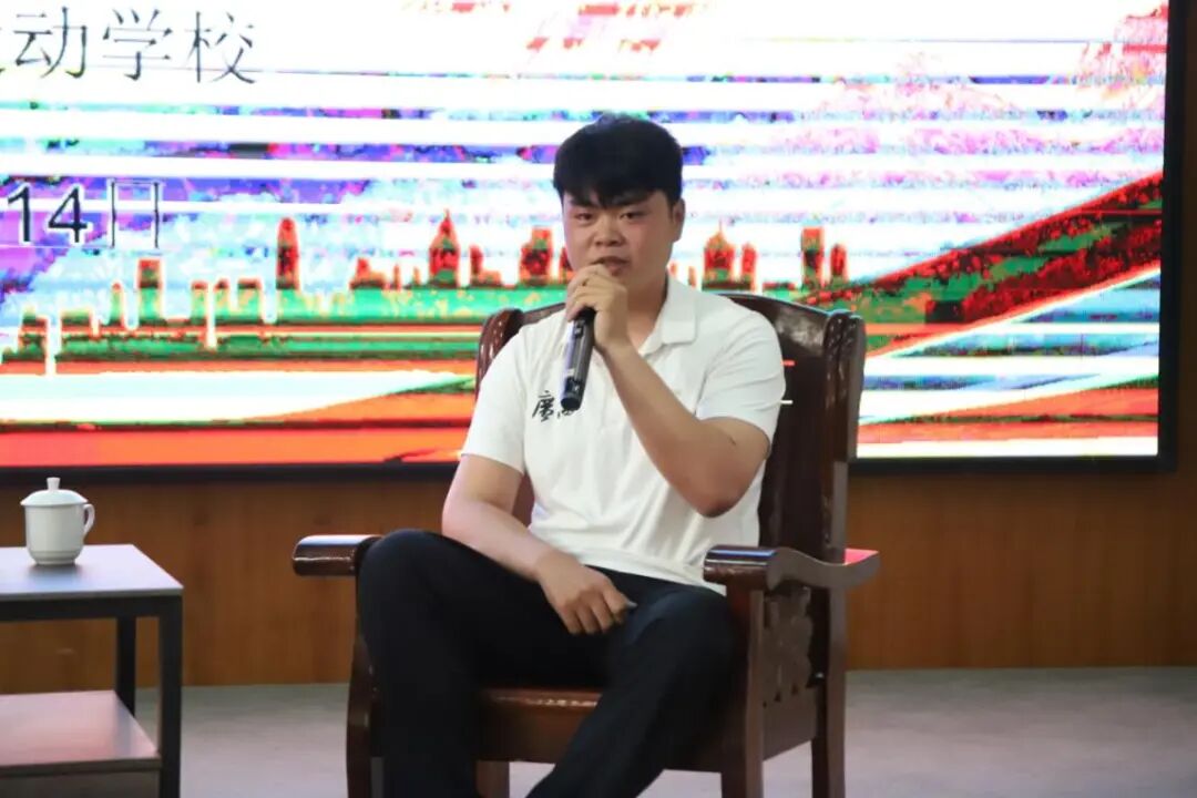 在随后的访谈互动环节中,市体校运动员踊跃提问,现场气氛十分热烈。包健晖向在校学子分享了面对瓶颈期如何调整心态、如何平衡训练与学业,以及在赛场上保持专注的心得。鼓励所有运动员坚定信心、专注细节,在训练中全力以赴,以最佳状态迎接区运会。