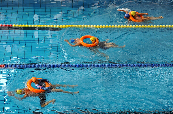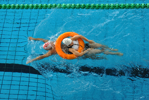 此次竞赛设男子50米游泳竞速(不分泳式)、女子50米游泳竞速(不分泳式)、卧垫刨泳竞速、水上紧急营救竞速四个项目。其中卧垫刨泳竞速赛规定运动员卧在充气游泳圈上面划行前进,运动员不得掉下水,如掉下水必须在原地爬上游泳圈继续前进。水上紧急营救竞速赛规定每组一男一女2名选手同时进行,赛程50米。每组一名运动员先在泳道25米处等待扮演受困人员,另一名运动员作为营救人员手持救生圈在岸上等待出发。比赛开始后,岸上运动员手持救生圈游至25米受困队员处,为其套上救生圈,然后拖至终点。营救过程中被营救人员不得游泳,不允许做游泳动作。