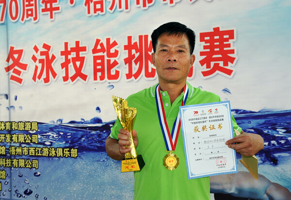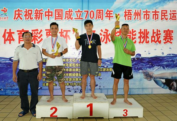 10月13日,由梧州市文化广电体育和旅游局主办,梧州市游泳跳水馆、梧州市西江游泳俱乐部、梧州市鹏城健康科技有限公司承办的庆祝新中国成立70周年2019年梧州市市民运动会“中国体育彩票杯”冬泳技能挑战赛在梧州市游泳跳水馆举行,这次挑战赛有来自市区、县近100名冬游运动爱好报名参加。