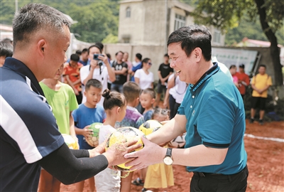 企业家向村民捐赠足球