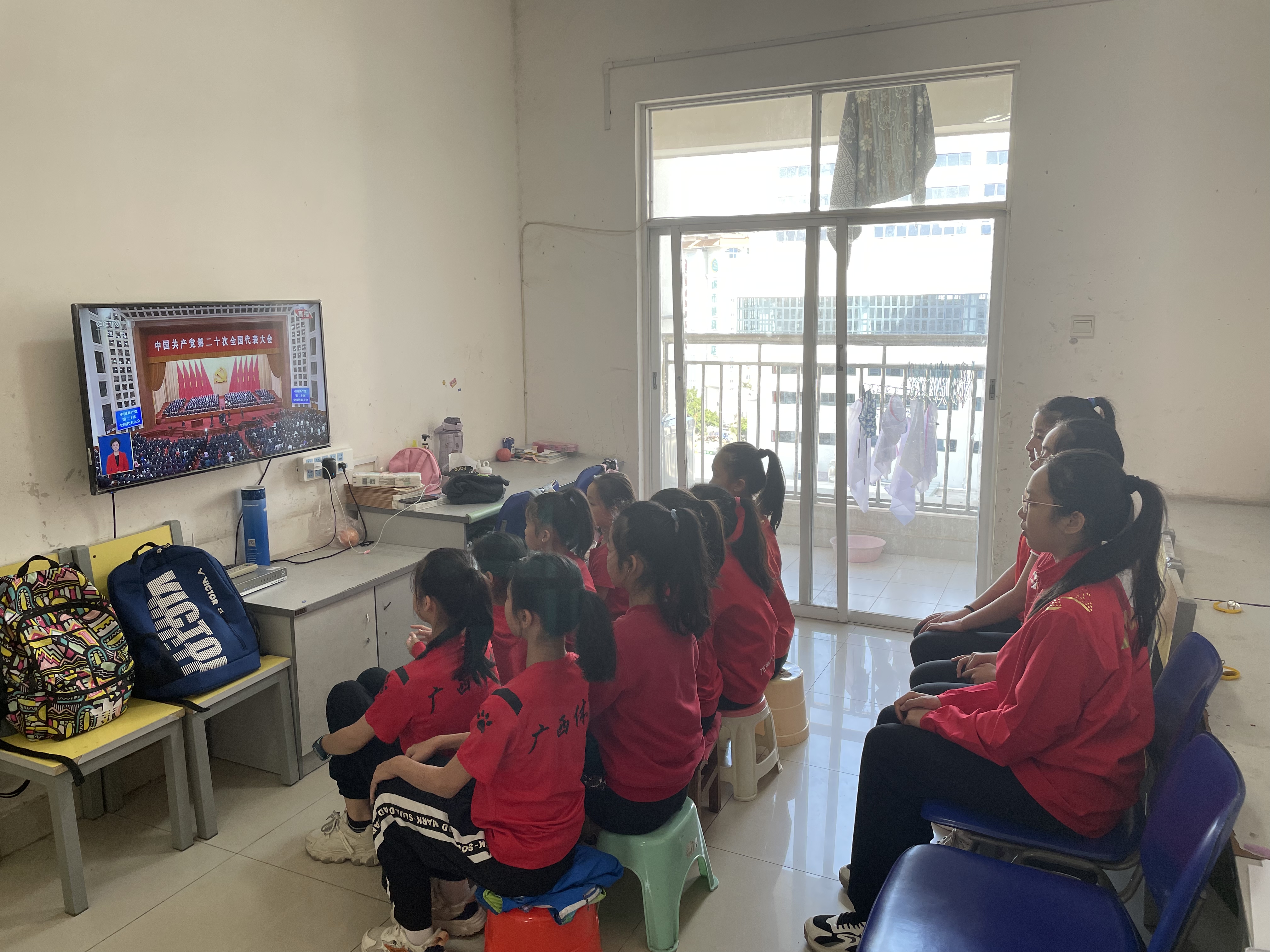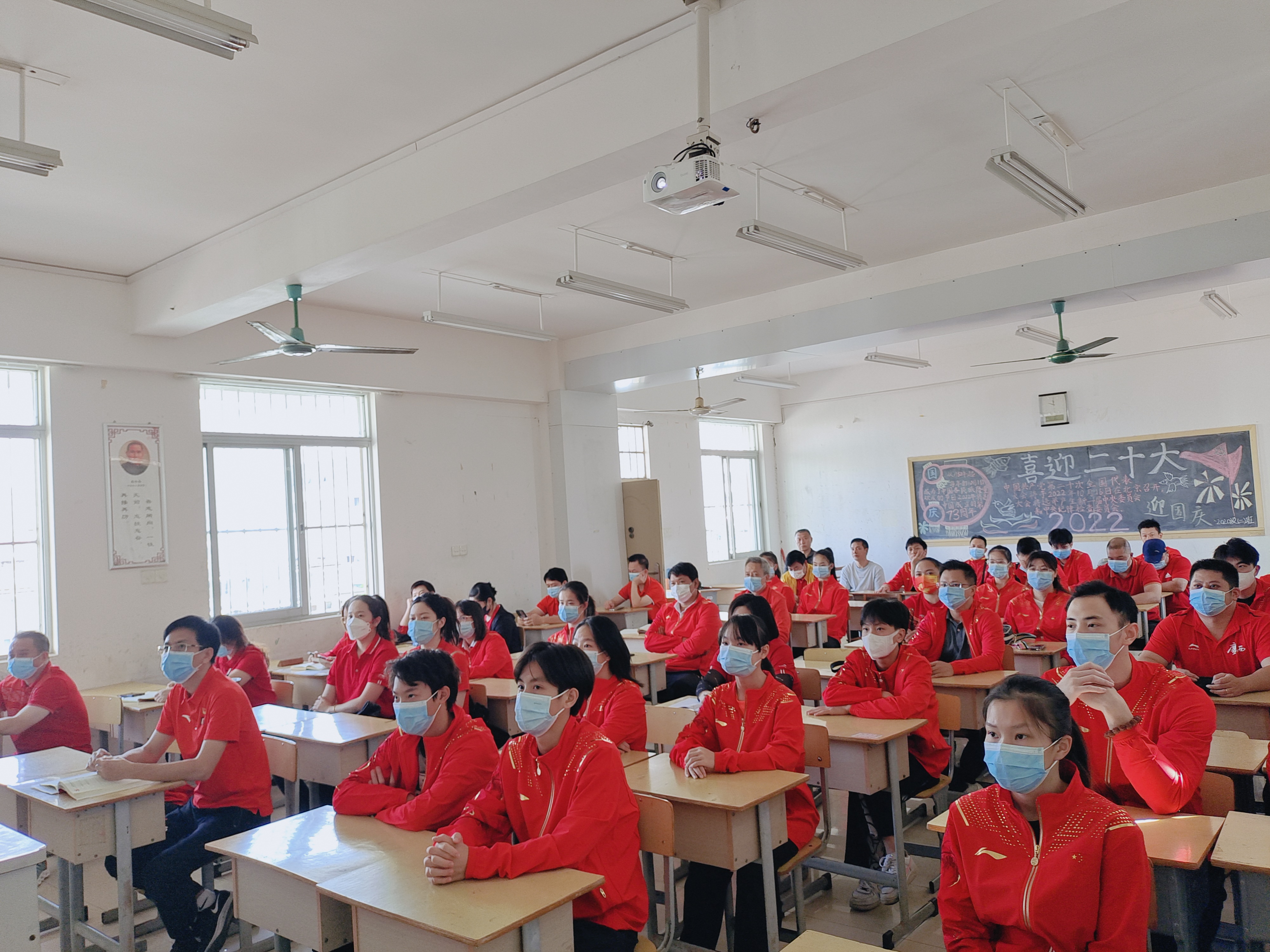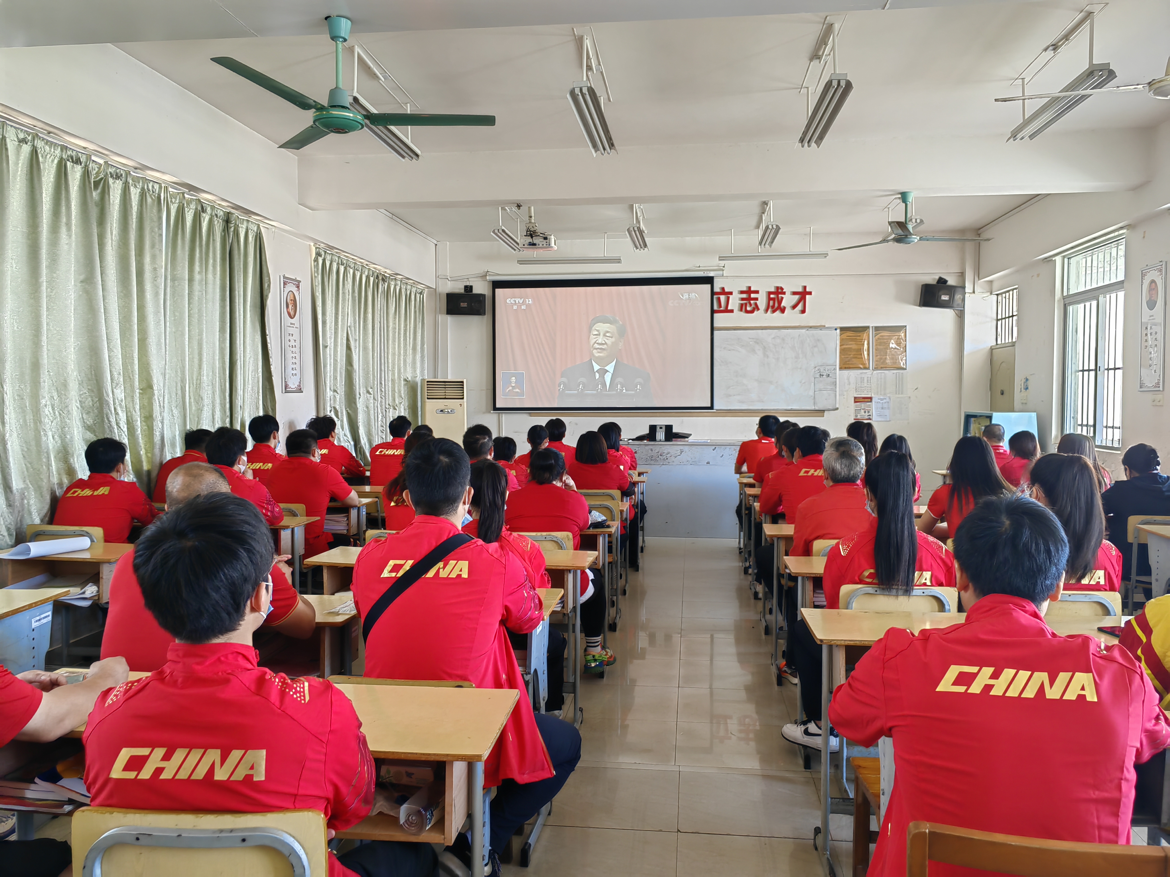2022年10月16日,举国关注的中国共产党第二十次全国代表大会在北京隆重开幕。广西体操武术运动发展中心组织党员、团员、干部职工、运动员共170余人在江南训练基地608教室及运动员公寓集中收听收看了习近平总书记在中国共产党第二十次全国代表大会上的报告,大家身着红色喜庆的服装,脸上洋溢着欢乐的笑容,喜迎党的二十大胜利召开。