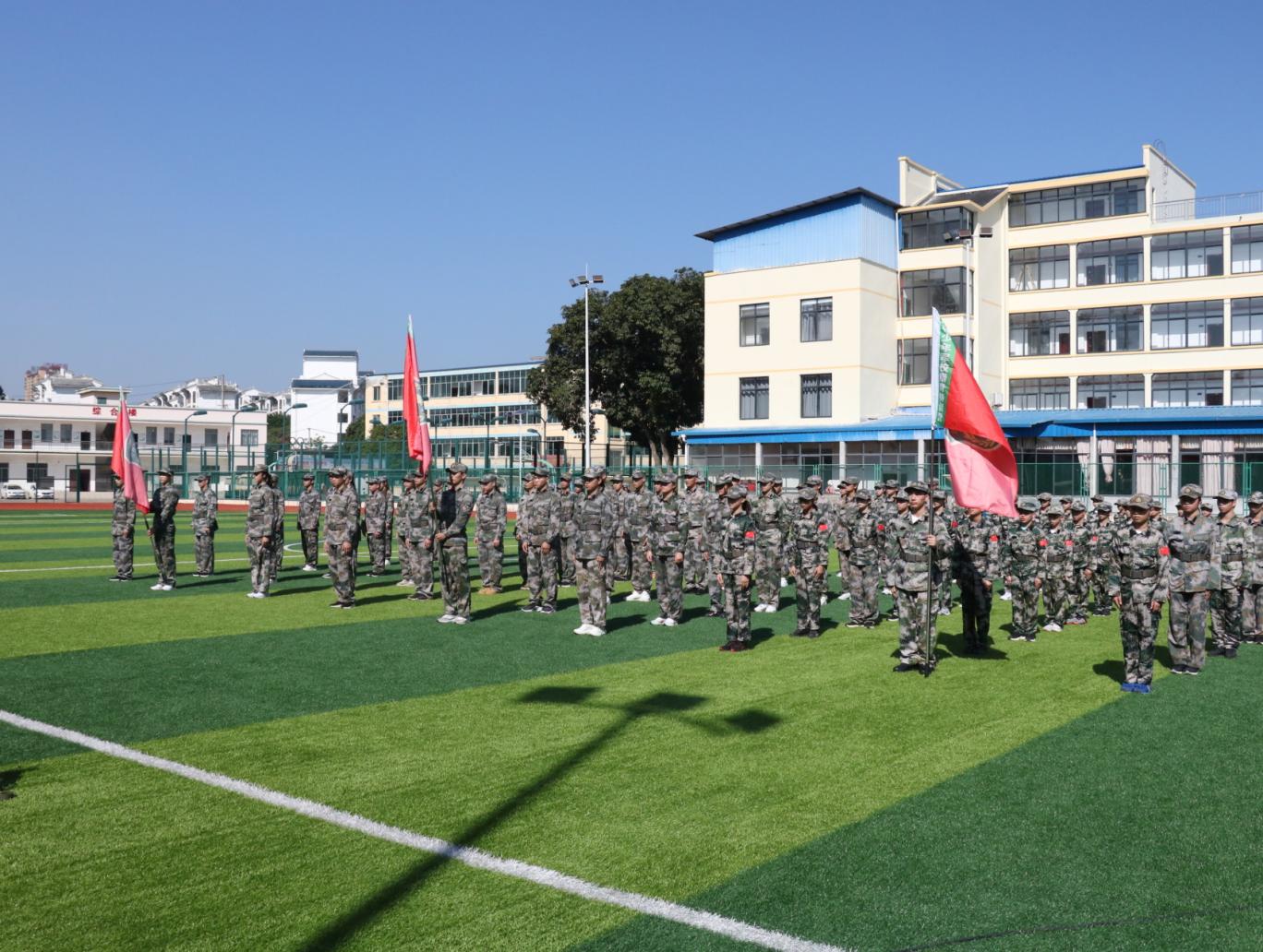 运动员们以昂扬的精神面貌迎接军训