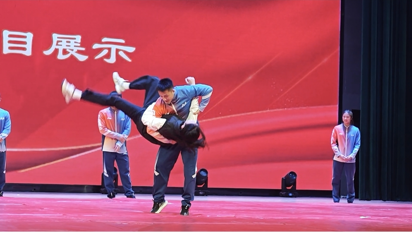 在经验分享环节,运动员们褪去冠军光环,化身“追梦学长”,用朴实的语言讲述着摔跤场上的滚烫岁月。巴黎奥运会亚军、全运会冠军曹利国以“摔倒与起身”为喻,分享了十五年摔跤生涯教会他的坚韧与担当。“摔跤的核心从不是永远站着,而是摔倒后能比别人更快爬起来”,他结合自身经历,勉励同学们在学业和生活中保持自律、懂得感恩,把挫折转化为前进的动力。