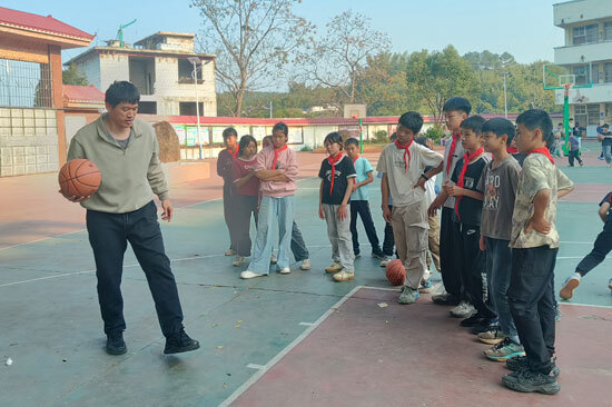 在留村小学,广西体育馆党支部向学校捐赠了一批篮球、足球、跳绳等体育器材,党员随后为孩子们带来了生动的篮球、羽毛球基础教学课,并通过趣味互动让孩子们在欢乐中掌握运动技能、感受体育魅力。期间,党支部一行还慰问了本单位派驻南安村的驻村干部,详细了解其工作与生活情况,肯定其扎根基层的辛勤付出,并勉励其在乡村振兴一线继续担当作为。