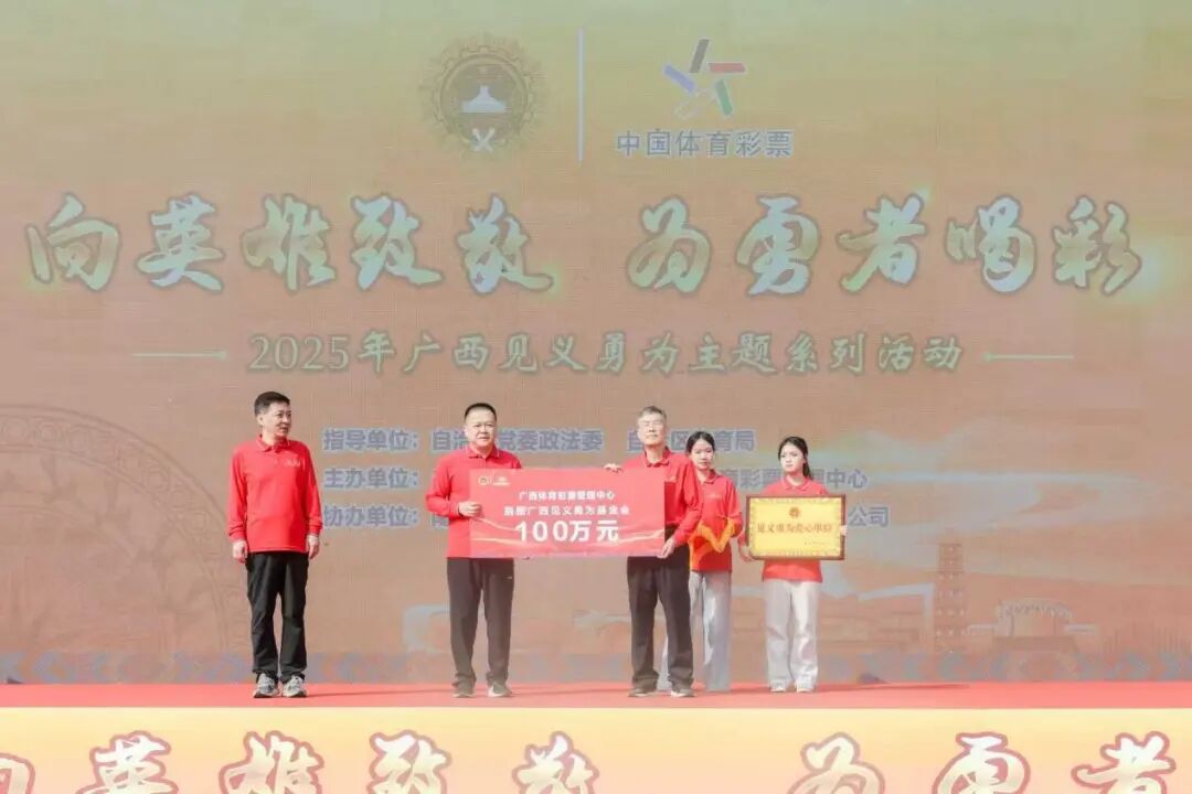 广西体育彩票管理中心向广西见义勇为基金会捐赠100万元爱心款。
