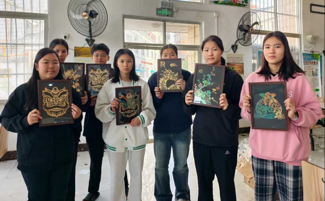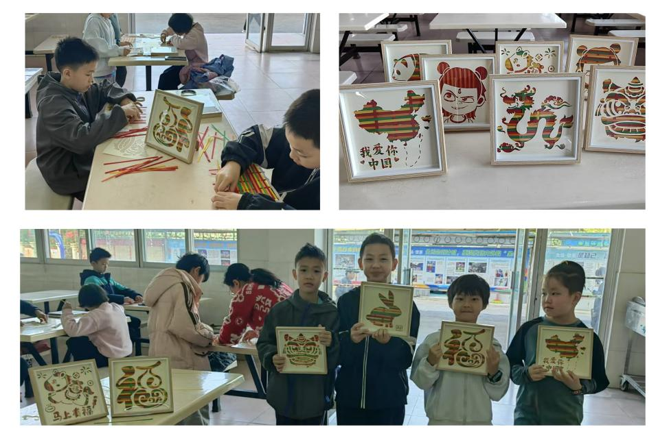 小队员们展示非遗竹编画作品
