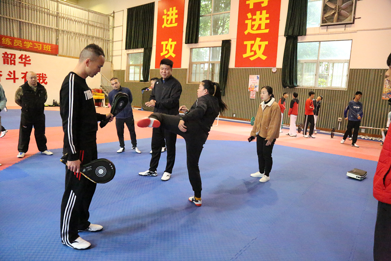 本次培训班在课程安排方面包含了跆拳道项目青少年指导思路及选材标准和比赛最新规则学习,与以往教练员培训班相比,在课程设置上更多的倾向于实操演练课,实操课全部由韩国籍教练员吴善泽授课,让基层教练能有更多的机会更有针对性地学习到前沿的技战术。实操课上,气氛热烈,以提问解答的方式进行授课,吴善泽教练对基层教练提出的问题耐心详尽的解答,亲身示范技战术要领,特别针对青少年运动员动作规范性和标准性的培养进行重点强调。