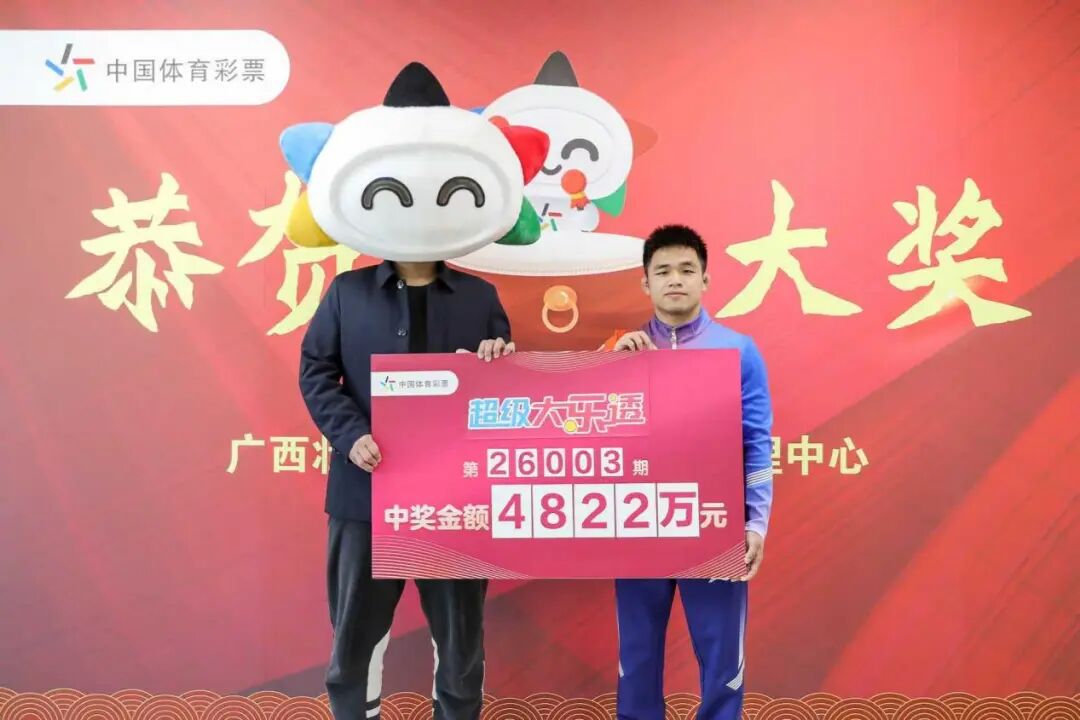 1月12日,中奖者贝先生(化姓)现身广西体彩兑奖大厅领取属于他的幸运大奖,十五届全国运动会自由式摔跤57公斤级冠军邹万豪现场为其颁奖,共同见证这份坚持与幸运交织的时刻。