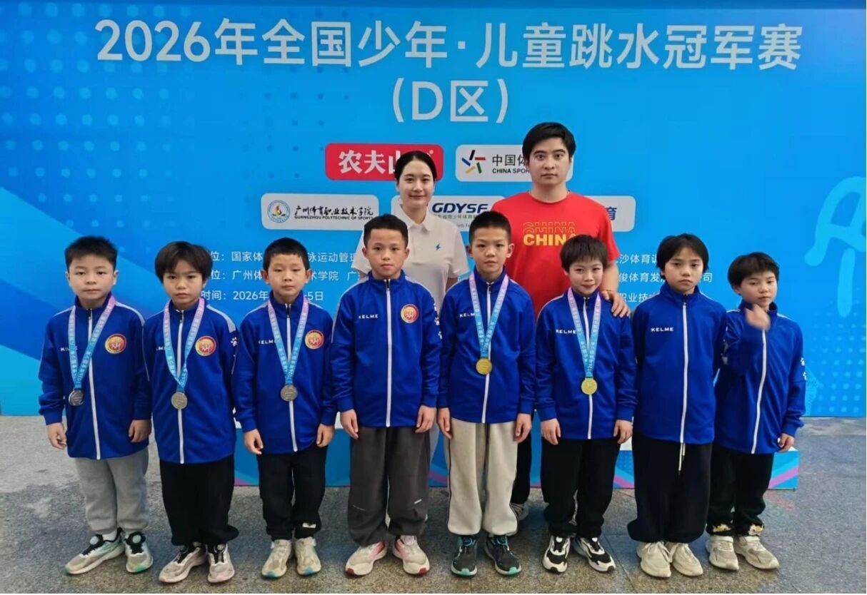 近日,2026年全国少年·儿童跳水冠军赛(D区)在广州圆满落幕。广西体校与广西水上运动发展中心携手组队,在教练员的悉心指导下,跳水小将们奋勇拼搏,最终斩获6金4银2铜,用实力交出了一份亮眼答卷。