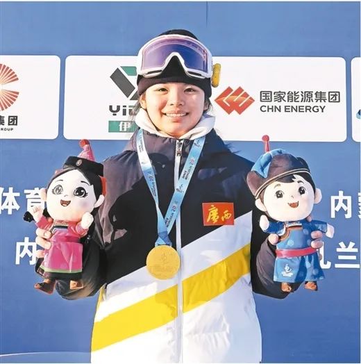 随后发生的一切让人惊喜。2018年,姚康平获全国单板滑雪冠军赛青年组冠军,成为广西首个冬季项目全国青年冠军;2020年,世界花样滑冰大奖赛朱黛紫菲与黑龙江选手合作获得双人滑项目铜牌,广西首枚世界级冬季项目奖牌就此诞生;2021年,罗明秀、钟华超等8名选手以技术官员的身份参与了北京冬奥会;2024年第十四届全国冬季运动会,广西首次组团参赛就取得了1金1银2铜的好成绩,甘佳佳在单板滑雪女子大跳台项目上成为广西首个冬运会冠军。