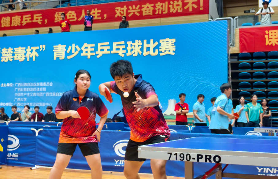 近日,由自治区禁毒委、自治区体育局、共青团广西区委、广西大学联合主办的第二届广西“禁毒杯”青少年乒乓球比赛在广西大学综合体育馆正式开赛。