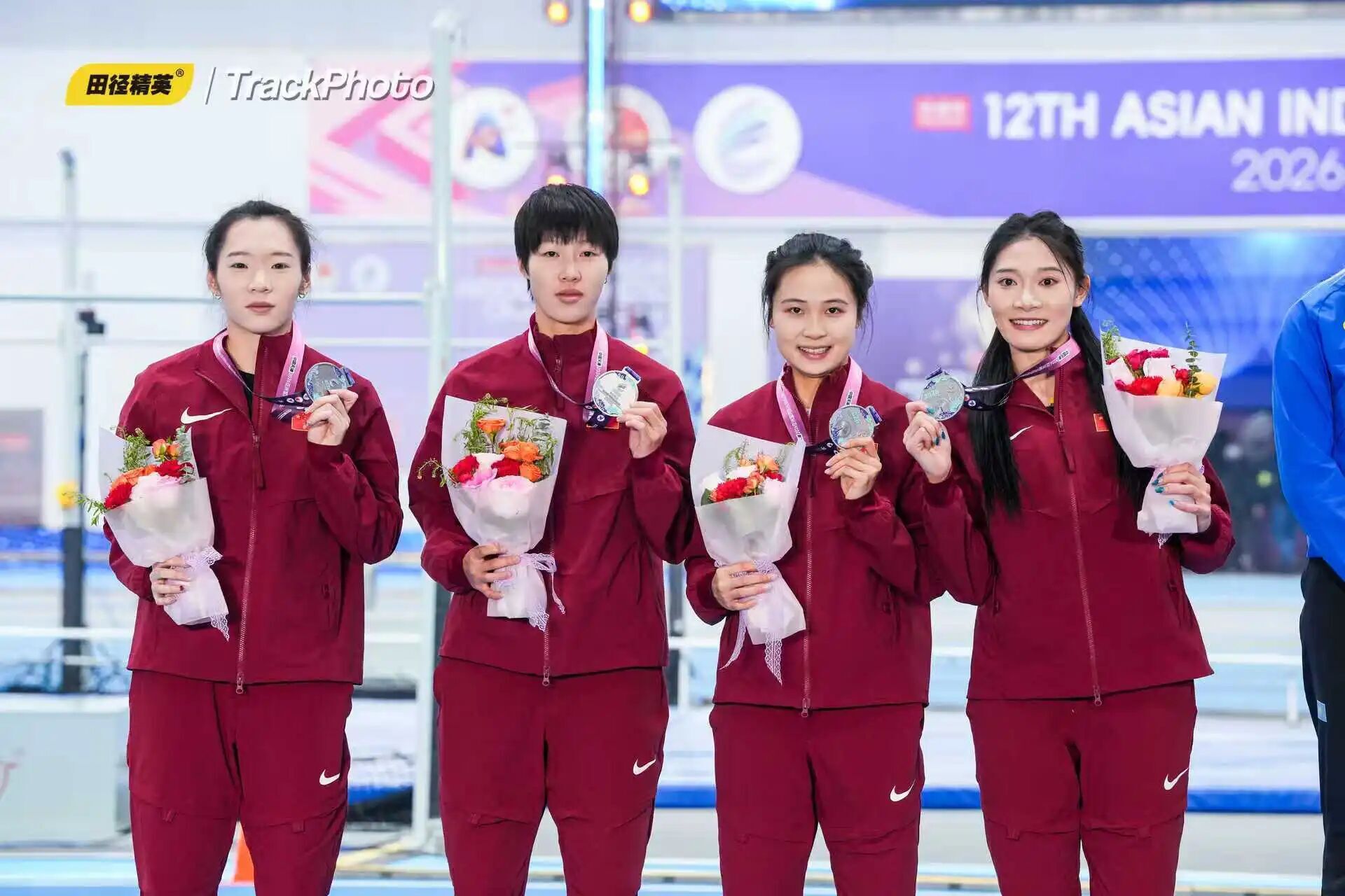 李凤丹(右二)与队友获得女子4×400米接力银牌